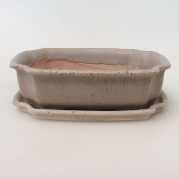 Cuenco bonsái + platillo H03 - 16,5 x 12 x 4,5 cm - beige