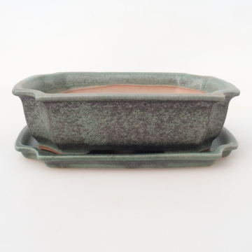 Cuenco bonsái + platillo H03 - 16,5 x 12 x 4,5 cm - verde