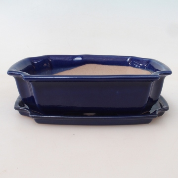 Cuenco bonsái + platillo H03 - 16,5 x 12 x 4,5 cm - azul