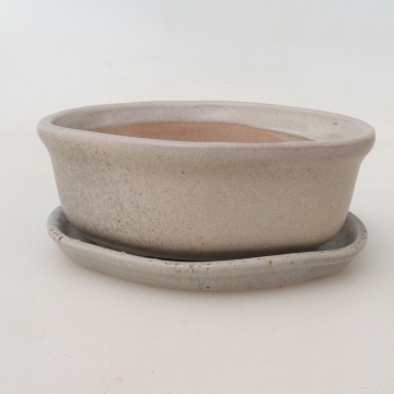 Cuenco bonsái + platillo H05 - 11 x 8 x 4 cm - beige