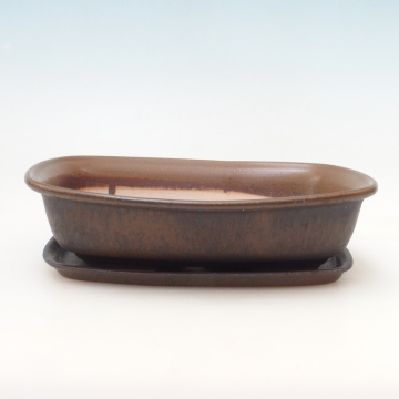 Cuenco bonsái + platillo H08 - 25 x 19,5 x 6 cm - marrón