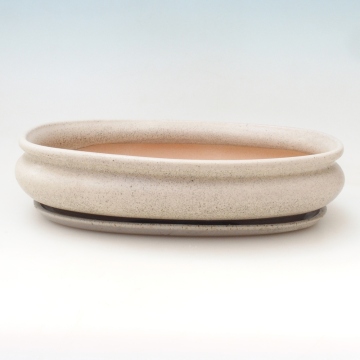 Cuenco bonsai + platillo H15 - 25,5x17,5x6 cm. - beige