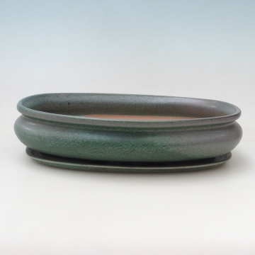 Cuenco bonsái + platillo H15 - 25,5x17,5x6 cm. - verde