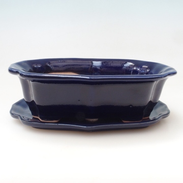 Cuenco bonsai + platillo H51 - 18x14x5 cm - azul