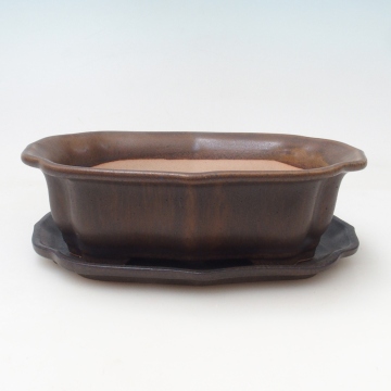 Cuenco bonsái + platillo H51 - 18x14x5 cm - marrón