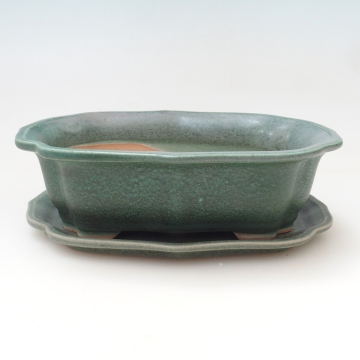 Cuenco bonsai + platillo H51 - 18x14x5 cm - verde