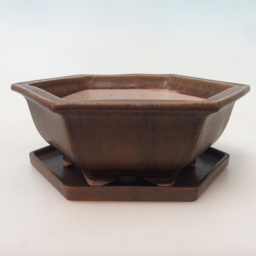 Cuenco bonsái + platillo H53 - 19 x 21,5 x 7 cm - marrón